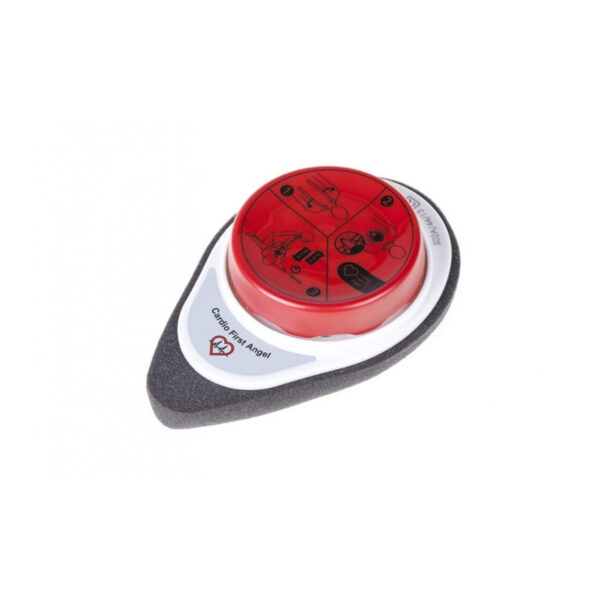 Le cardio-first angel est un boîtier d’aide à la réanimation cardio-pulmonaire (RCP) qui s’utilise en complément d’un défibrillateur face à une victime en arrêt cardiaque. Il permet de localiser précisément et rapidement l’endroit du massage cardiaque et aide à positionner les mains grâce à son schéma situé sur le bouton poussoir. Il permet la maîtrise de la pression exercée sur le thorax de la victime grâce à un indicateur sonore se traduisant par « clic-clac ».